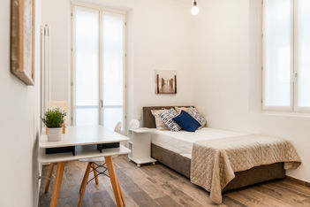 Appartamento di 110 mq con ingresso, 3 camere ad uso singola (F – I – L), 2 bagni e cucina